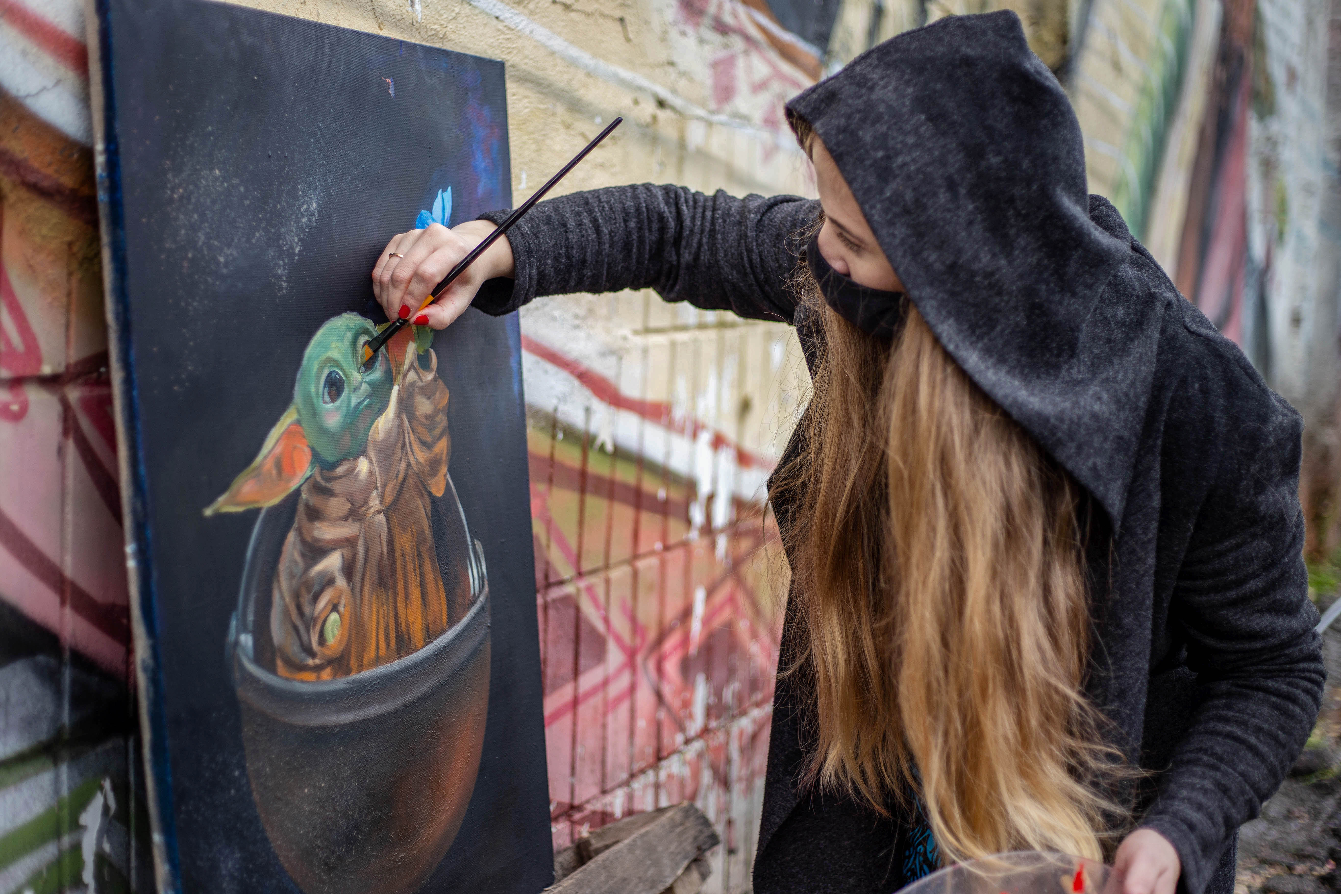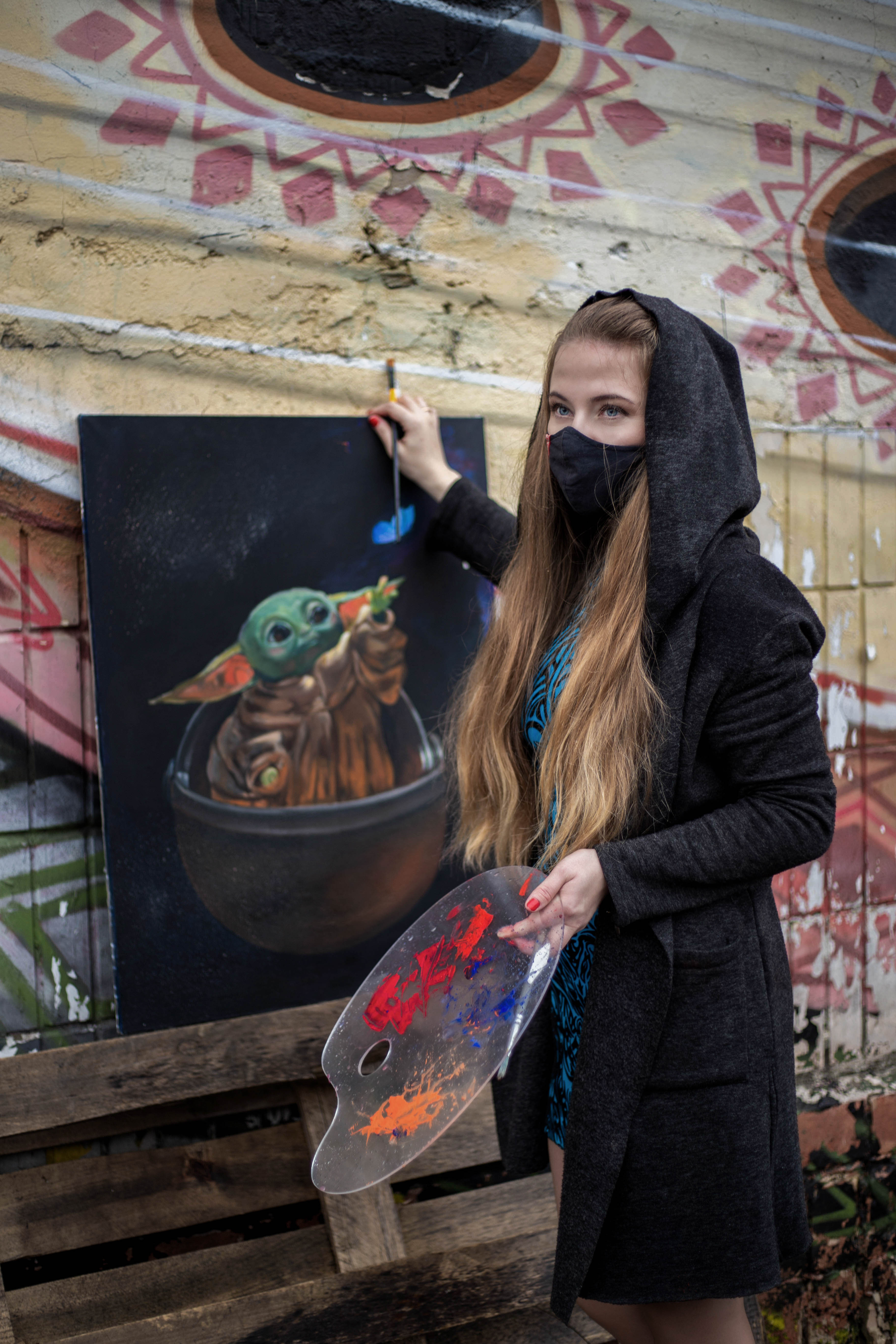 This painting speaks of how, even in the farthest corners of the galaxy, light and kindness survive in the simplest of desires — to touch something beautiful.